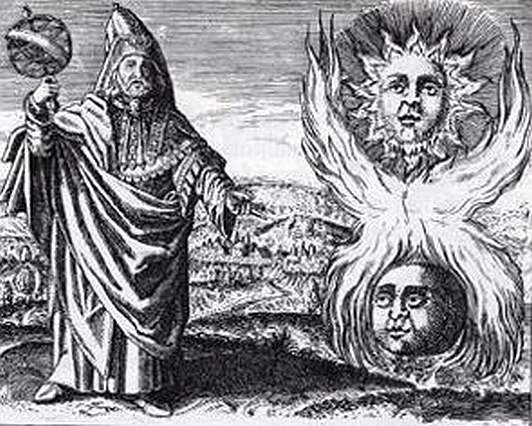 La figura di Ermete Trismegisto, personaggio misterioso il cui nome significa ‘il tre volte grande’, è il frutto di un’elaborata sintesi del dio greco Hermes e dell’egiziano Thoth. Divenuto Ermete per i greci e i latini, che gli attribuivano l’invenzione delle arti e delle scienze, venne citato come autorità dottrinale anche da alcuni Padri della Chiesa come Tertulliano e Lattanzio, che lo definì “perfettamente dotato di ogni sapere”. La figura di Ermete Trismegisto assume il ruolo di mediatore fra l’Assoluto e l’Uomo, colui che disvela la dottrina che conduce alla salvezza, e signore dell’alchimia. Da lui deriva la dottrina dell’Ermetismo. [Il quadro a lato è di DE VOS DANIEL (1568-1695) Ermete Trismegisto]