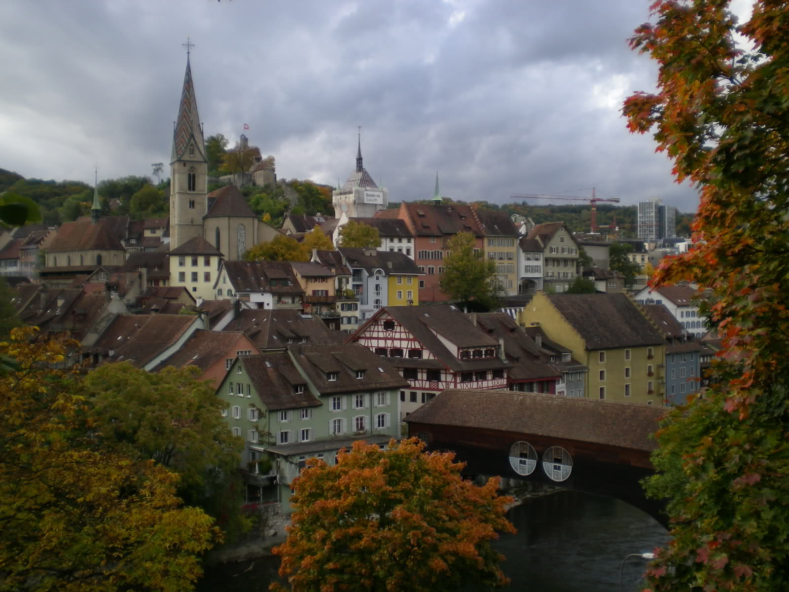 Giornata cominciata con molta calma. Mi reco a Baden (2km da Wettingen), rinomata città termale fin dall’epoca dei romani, che le diedero il nome di “Aquae Helveticae”. Personaggi del calibro di Goethe, Nietzsche e Durrenmatt si sono rilassati nelle acque termali di questa ridente cittadina. Come sempre la mia prima tappa è l’ufficio turistico per munirmi di mappa. In Svizzera sono attrezzati bene, anche per le piccole cittadine esistono dei percorsi turistici debitamente segnati sulla mappa e per strada. Ovviamente non seguo il percorso e mi inoltro per le stradine meno trafficate. Un consiglio: non mangiate nei ristoranti sono “carissimi”. Pagai un’insalata, un’acqua naturale e 1 caffè (brodo) 30franchi! Meglio prepararsi i panini da casa/hotel, i supermercati sono più accessibili, ma pur sempre più cari di quelli italiani. Ho mangiato al ristorante “Schwyzerhusli” nella pi