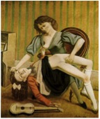 [Le immagini contenute nel testo in ordine di apparizione: Balthus, Lezione di chitarra (1934); Film d’amore (2004, 46:47); Balthus, Les Enfants Blanchard (1937); Film d’amore (2004, 21:43)].