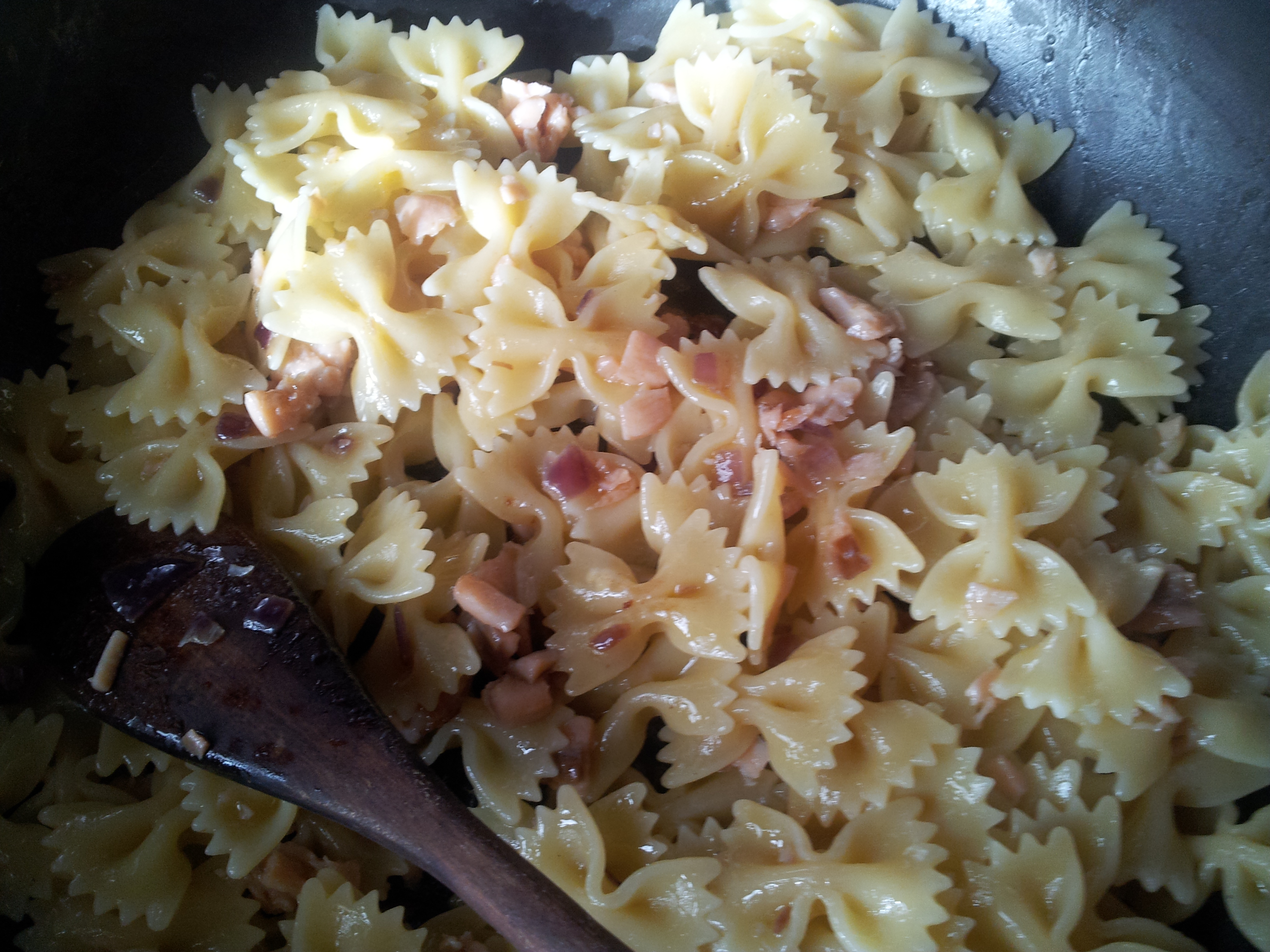 Cuocete le pasta e colatela al dente, versate le farfalle nella padella con il salmone. Fate saltare per un paio di minuti per far insaporire la pasta. Servite caldo e Buon Appetito!!!