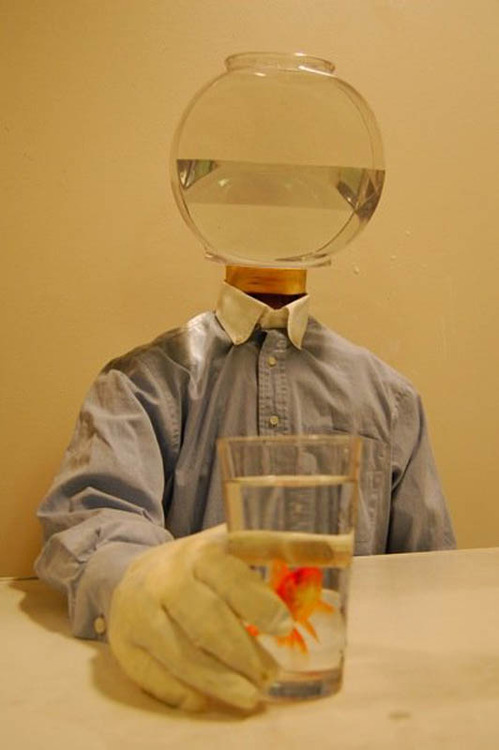 “I use objects that people are already familiar with because through these objects, I feel that I can communicate in a type of language that everyone understands. I substitute these objects for a person’s head and create a vicious cycle by putting the person in a chicken-and-egg circumstance with no escape.”