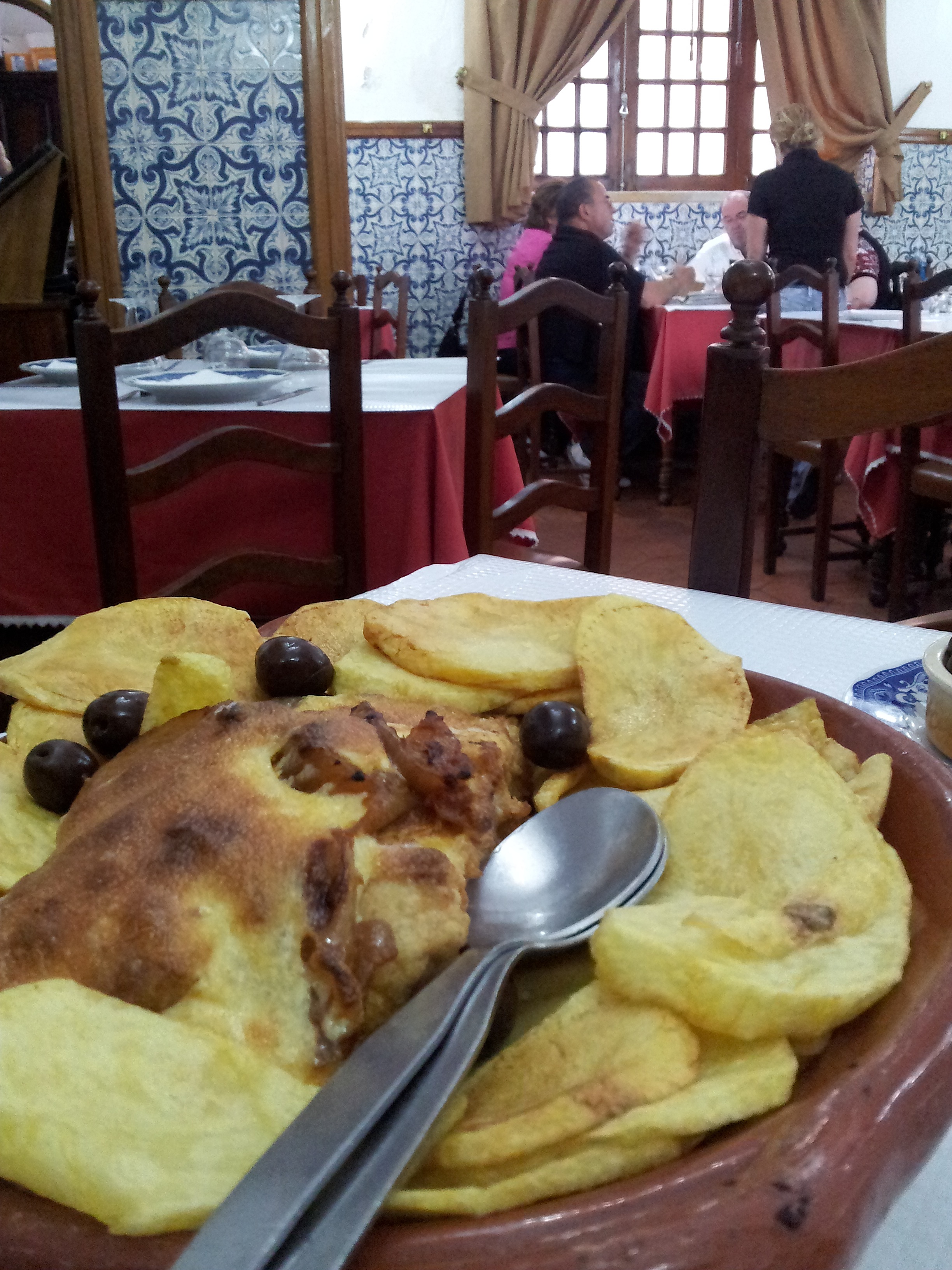 Il check-in si può fare solo verso le 15h ed essendo arrivata alle 13h chiedo la cortesia di lasciare i bagagli in hotel (piacevole sorpresa: custoditi a chiave dal personale dell’hotel). Vado a pranzo al ristorante “O Convento”, a due passi dall’hotel. Non turistico e ottima cucina locale. Provo il piatto della casa “bacalhau à convento” (vedi foto).
