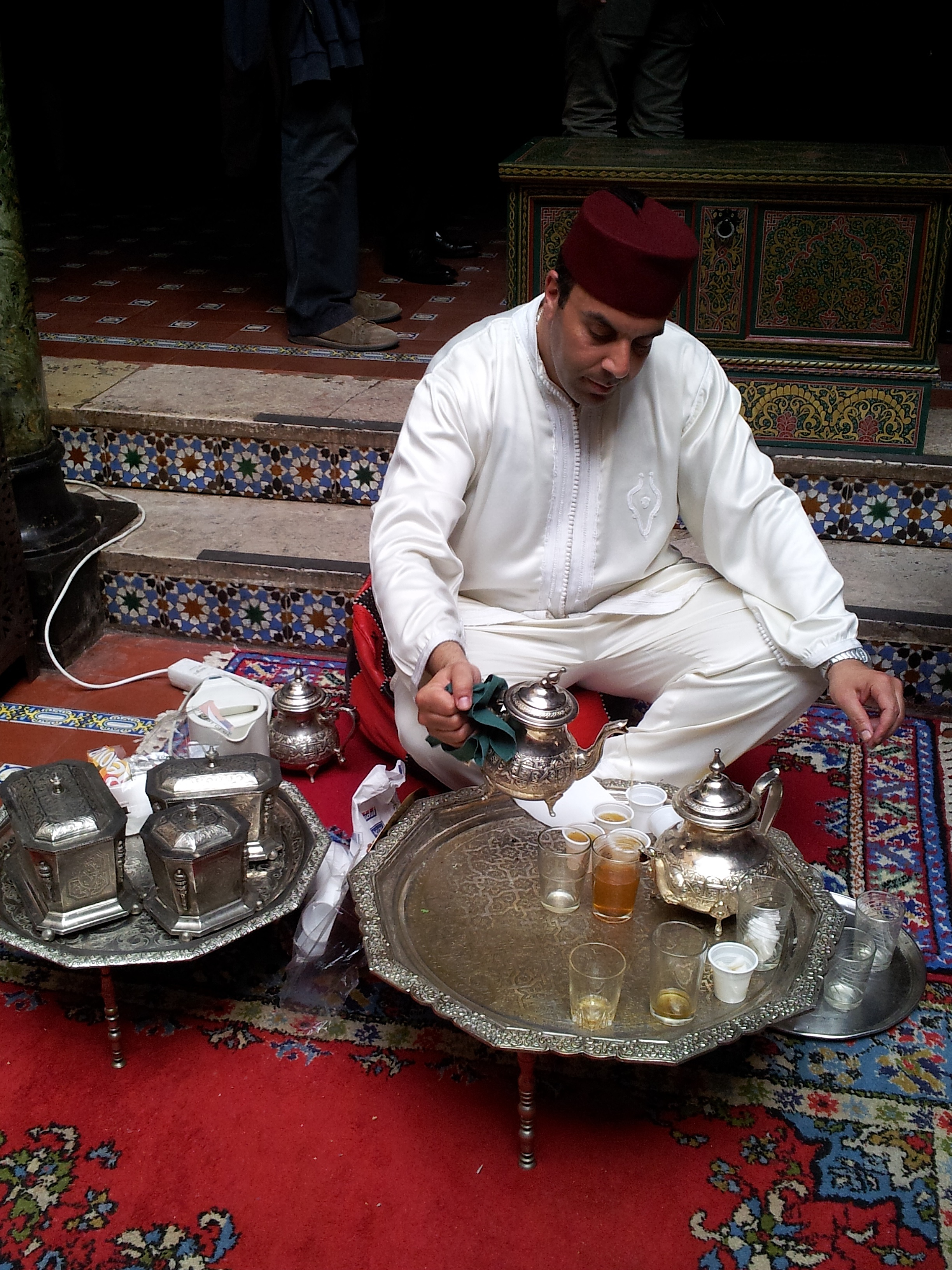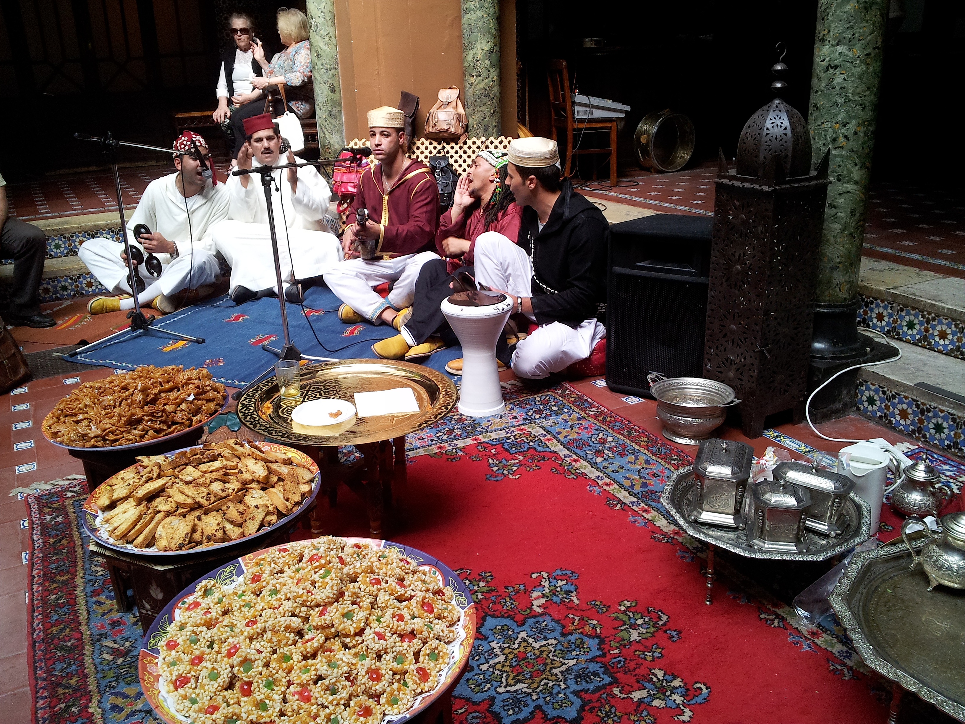 Il programma prevedeva l’inaugurazione dell’esposizione di fotografia: “Perspetivas de Marrocos” del fotografo Vasco Casquilho. Scatti veramente interessanti, adoro i ritratti. Prima dello spettacolo musicale de Chaabi e Gmawa, siamo stati invitati alla Cerimonia del Té (alla menta, veramente delizioso).