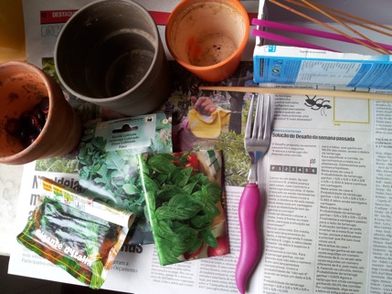 Non vi serve un terrazzo e nemmeno un balcone, vi basta un po’ di spazio in cucina, qualche vasetto, della terra ben concimata e semi. Questi ultimi possono essere comprati in sacchetti o, in alcuni casi, presi direttamente alla fonte. Io, per esempio, ho comprato i semi del basilico e della rucola ed ho preso direttamente i semi dal peperone e dal pomodoro. La cipolla l’ho piantata direttamente nel terreno.