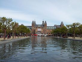 Per pranzo ho appuntamento al Museumplein, quindi attraverso il ponte della Kerstraat e proseguo lungo il canale Prinsengracht, devio per fare un salto al Frederickplein e la National Bank (edificio orrendo), proseguo sulla Weteringchans fino al Rijkmuseum (con i lavori in corso).