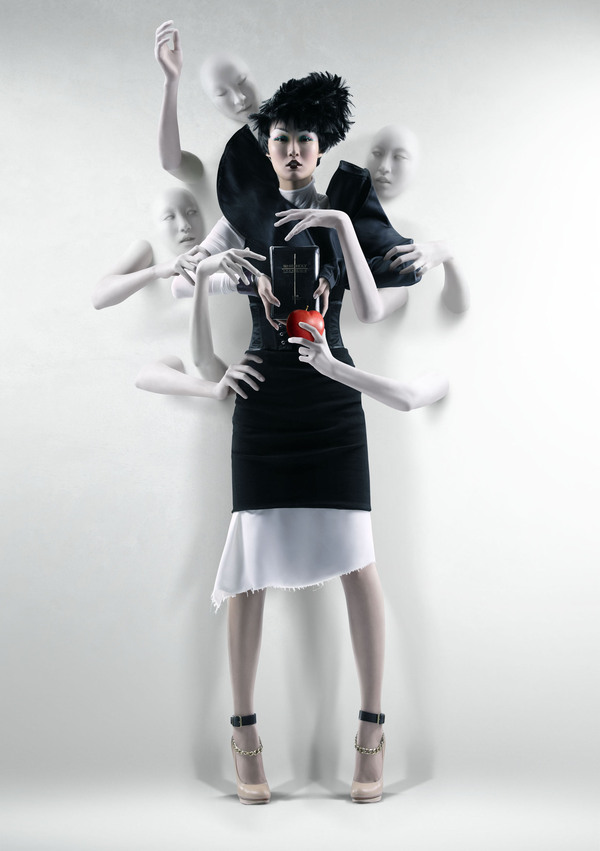 Leggiamo le parole dell’artista: “This is a chronicle progression of a woman. A woman who morphs from innocence to struggles, and back to innocence. From astate of purity, when there is no good and bad, to sophistication, which comes with seduction, greed, debauchery amongst all other evils that dominate the world. On the verge of decadence she struggles, for individuality, for virtue, for her own soul. In the end amidst all chaos, she unites with peace of mind, living with a sober fact that she is just one of them, and she can’t hide. That is her IDENTITY, whether she likes it or not.“.