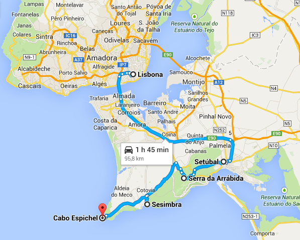 Una domenica uggiosa ci attendeva a Lisbona, lo spettacolo fuori la finestra non era molto invitate. Per risollevare gli umori si decide di andare a pranzo a Sesimbra, ma visto che ci siamo svegliati presto facciamo il giro lungo. Dopo aver percorso il ponte Vasco da Gama, famoso per i suoi 17,2 km di lunghezza, passiamo per Setúbal e poi dritti verso la Serra de Arrábida, uno dei mie posti preferiti in questa zona.