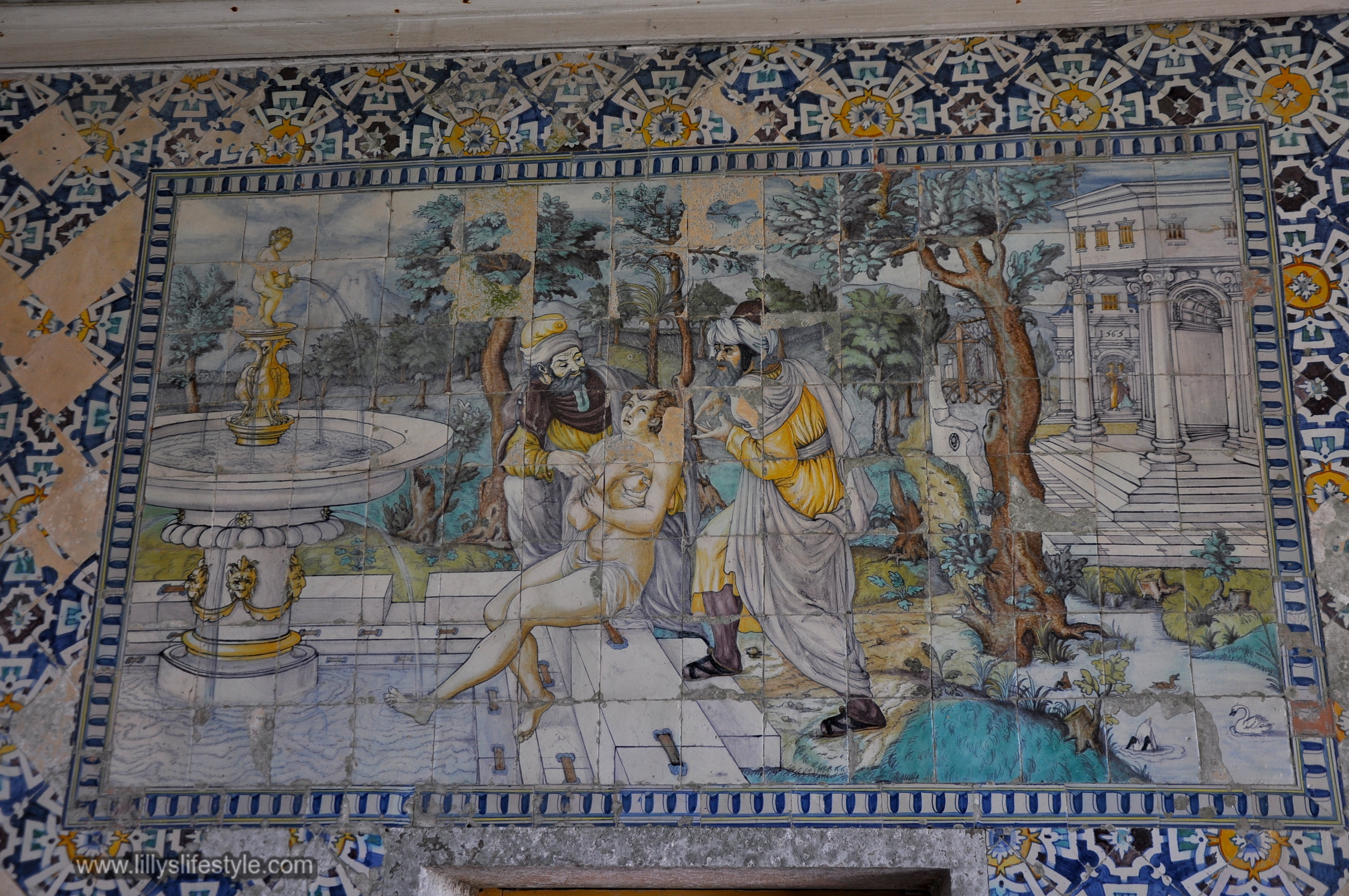 Si noti il pannello d’ispirazione fiorentina raffigurante Susanna e i vecchioni (1565), considerato il più antico pannello figurativo del Portogallo; e fonte d’ispirazione per la scena del film della giovane donna che nuota nuda nelle acque del palazzo.