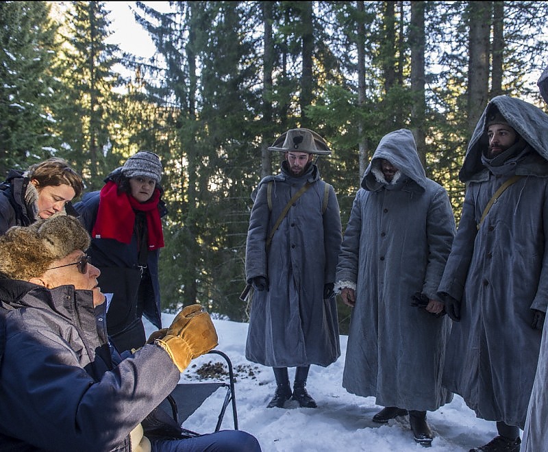 L’intera trincea è stata ricostruita per il film a 1100 metri di altezza in Valgiardini. Tra la neve e l’isolamento la troupe, di una decina di attori e settanta comparse, ha lavorato per sette settimane. Ermanno Olmi ha voluto sfidare se stesso e i suoi collaboratori a vivere “la verità” dei gesti intorpiditi ed i volti segnati dal freddo. Continuando a salire, a 1800 metri, in Val Formica, c’è l’esterno della trincea, le feritoie, il cimitero. Le costruzioni non sono state smontate e si potranno visitare per i quattro anni dedicati alle celebrazioni del 15-18. Una nota per me importante: per la ricostruzione della trincea sono stati scelti materiali che mantenessero al minimo l’impatto ambientale, la manodopera è locale, ed hanno dato la massima cura al risparmio di trasporti ed energia, ed hanno utilizzato esplosioni con polveri atossiche per un cinema sostenibile secondo il progetto Edison Green (per saperne di più).