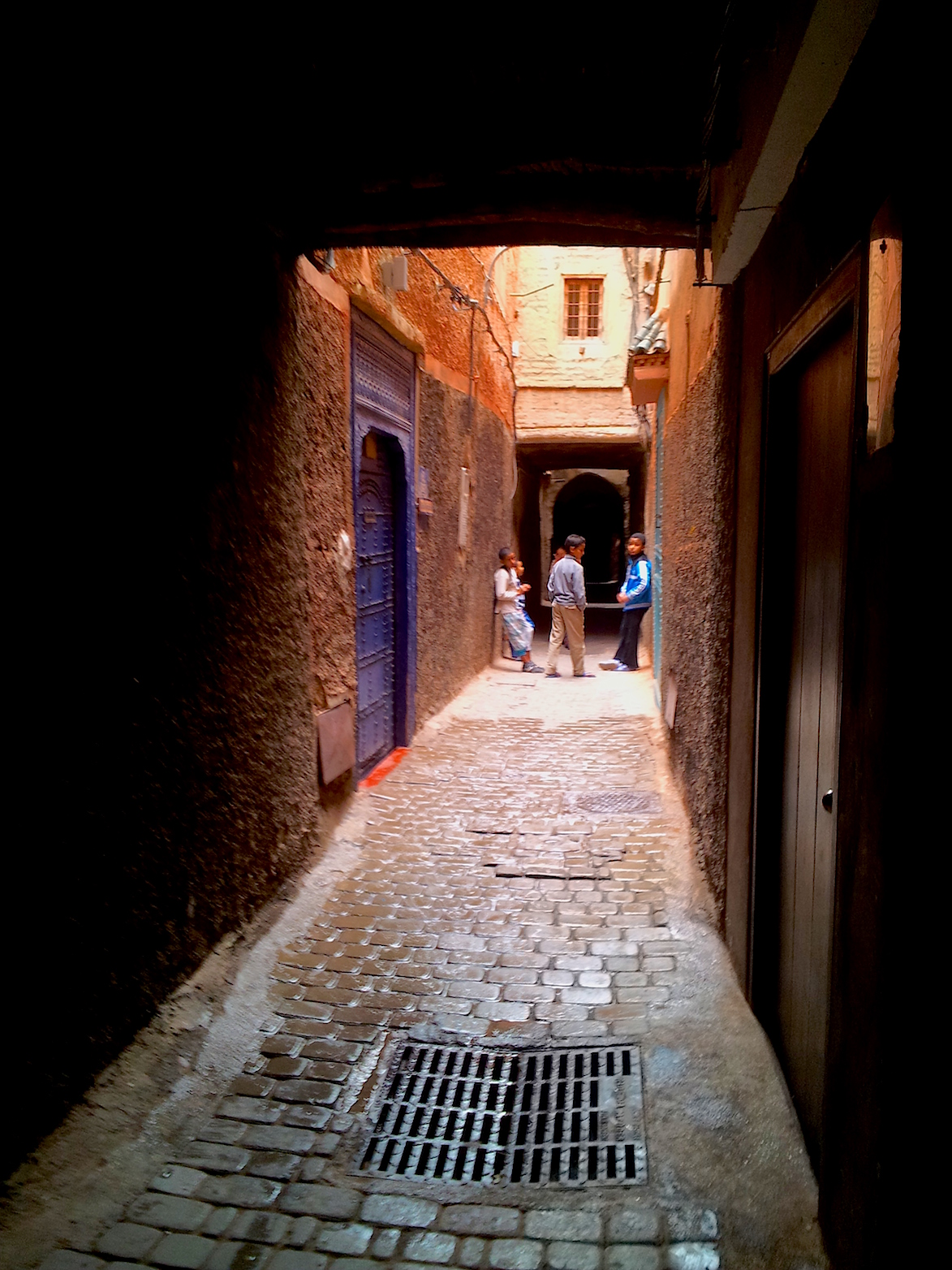 Leggendo nella loro pagina internet, quello che mi ha subito colpito è il loro concetto di turismo solidale (leggi sul sito). Ecco, ho pensato, esattamente la “differenza” che cercavo. Lo Zen è un piccolo riad, di sole 6 stanze a conduzione quasi esclusivamente familiare, inserito in un quartiere povero dove il turista non passa inosservato; ma allo stesso tempo, è un quartiere sicuro e si può far amicizia con i bambini che giocano con una palla improvvisata fatta di elastici, o incontrare una bambina, che mi resterà nel cuore, che andava tutte le mattine a prendere l’acqua ad una fontana per strada. Ci viene poi spiegato che le case limitrofe non hanno elettricità o acqua e spesso chiedono al riad di poter, in estate, usufruire del loro frigorifero.