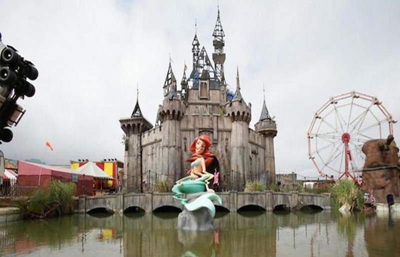 Appena ho letto la notizia che Banksy aveva realizzato un lunapark, ha fatto scendere in classifica i viaggi che avevo programmato per i prossimi due anni, collocando la Gran Bretagna, più precisamente Weston-super-Mare, un ex lido costiero, tra le prossime mete. “Ho amato il Tropicana fin da bambino, perciò riaprire queste porte è per me un onore” ha detto Bansky. Si chiama Dismaland Bemusement Park, per gli amici Dismaland, nome che ci riporta al soggetto: la versione da incubo di Disneyland.