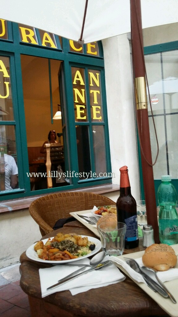 Avevamo una prenotazione al ristorante vegetariano Clear Head (Borsov 2, Praha 1), consigliato da Luca di TuristiPerPraga. Ottima scelta sia per cibo che per servizio (uno dei pochi con personale non maleducato, una rarità in città) e una location da fiaba. Guardate la nostra sala.