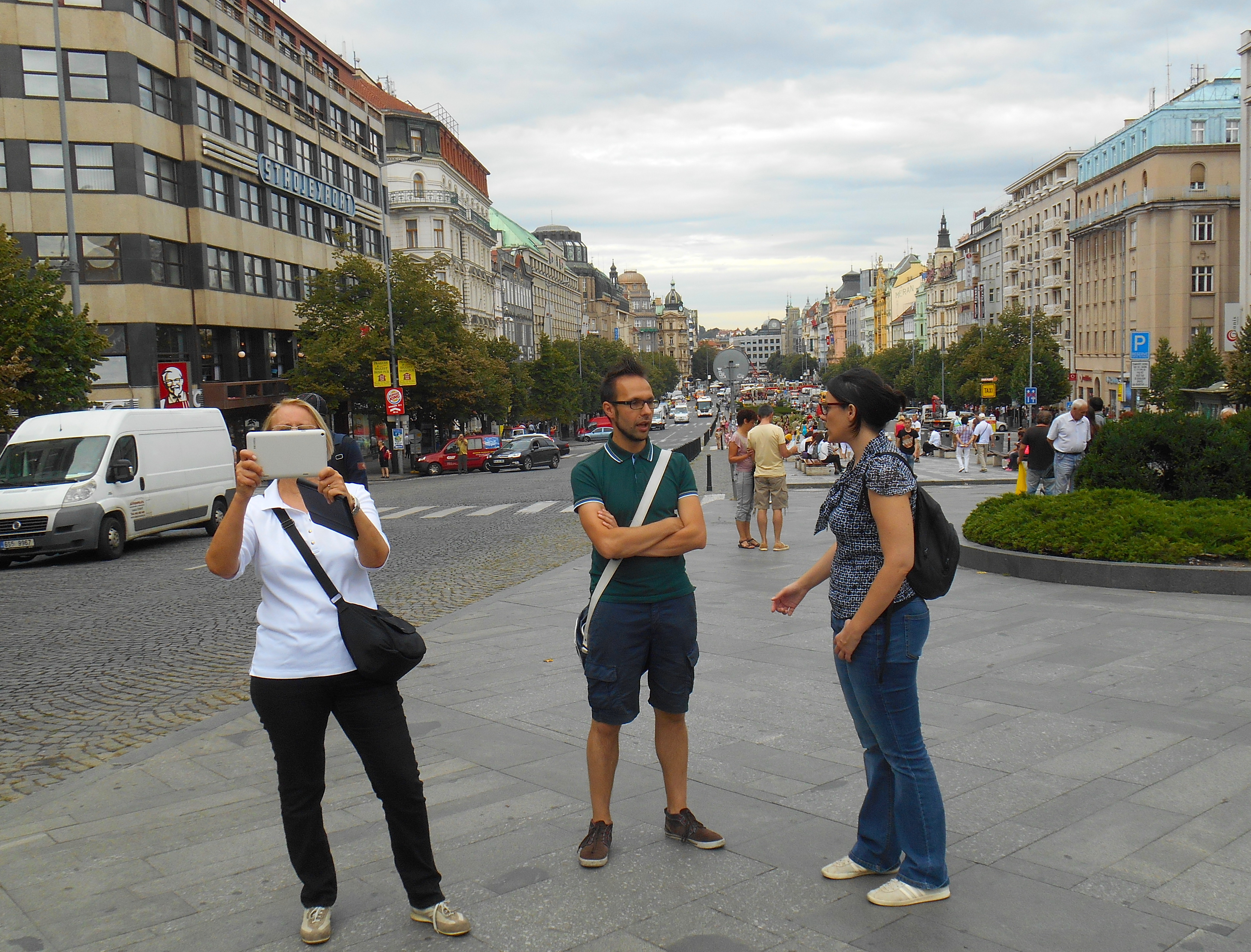 Noi siamo stati accompagnati da Luca per un tour classico 1. Un tour cominciato in Piazza San Venceslao, a prima vista non ci si rende conto che è una pizza sembra invece un lungo boulevard della Città Nuova, simbolo della rinascita economica ceca. Qui Luca ci ha raccontato del difficile periodo comunista e degli studenti che si sono dati fuoco perché credevano che le cose potessero cambiare.