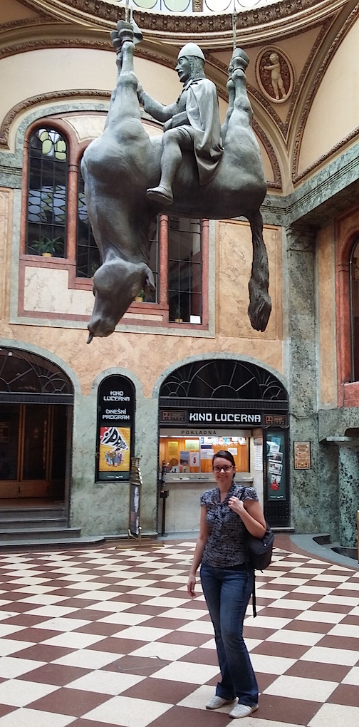 Grazie a Turisti Per Praga sono riuscita ad integrare, nel loro tour classico, la visita di molte delle opere dell’artista provocatore, come: Kůň – il cavallo o per meglio dire il cavallo di San Venceslao all’interno del Pálac Lucerna, gioiello art nouveau costruito negli anni ’20.