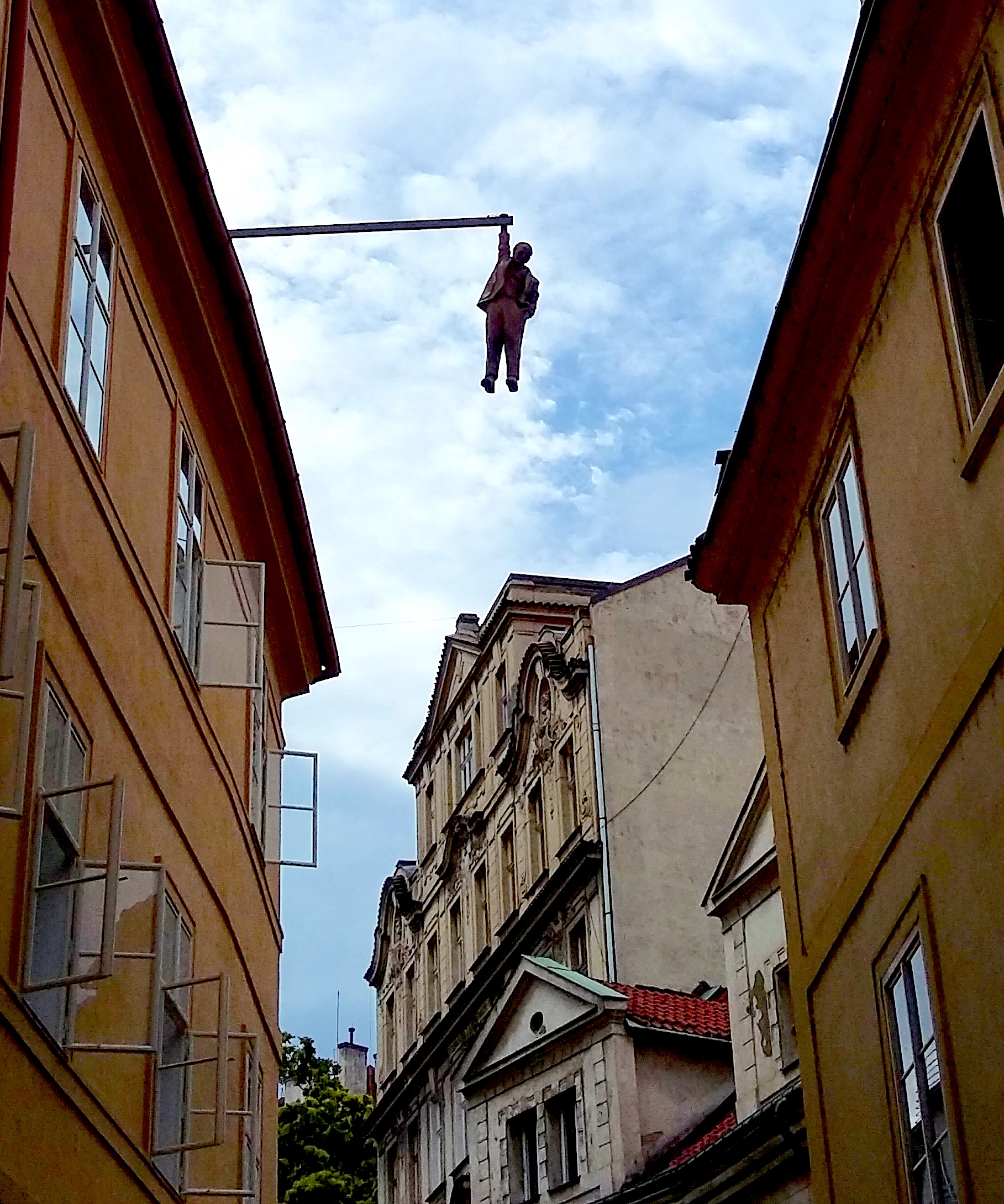 Viselec (L’appeso) scultura situata in Husova, vicino Betlémské náměstí. L’opera raffigurerebbe Freud appeso ad una trave, ma come sempre con le opere di Cerny, nulla è dato per scontato. Sarà veramente Freud?