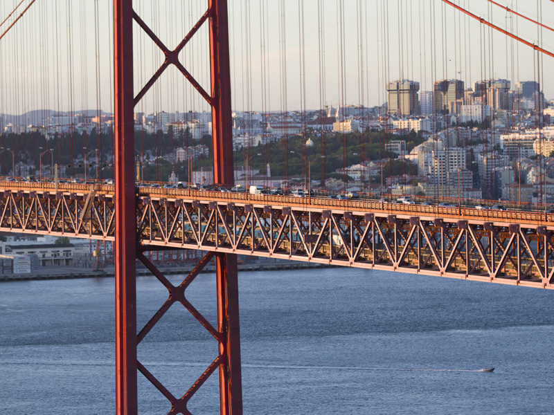 Il ponte sospeso sul fiume Tago, che fino alla Rivoluzione dei Garofani (1974) si chiamava Ponte Salazar in quanto commissionato dal dittatore Salazar nel 1960, fu inaugurato il 6 agosto del 1966. La maestosa struttura, lunga 2280 metri, è costituita di 263 mila metri di cemento e 72600 tonnellate di acciaio.