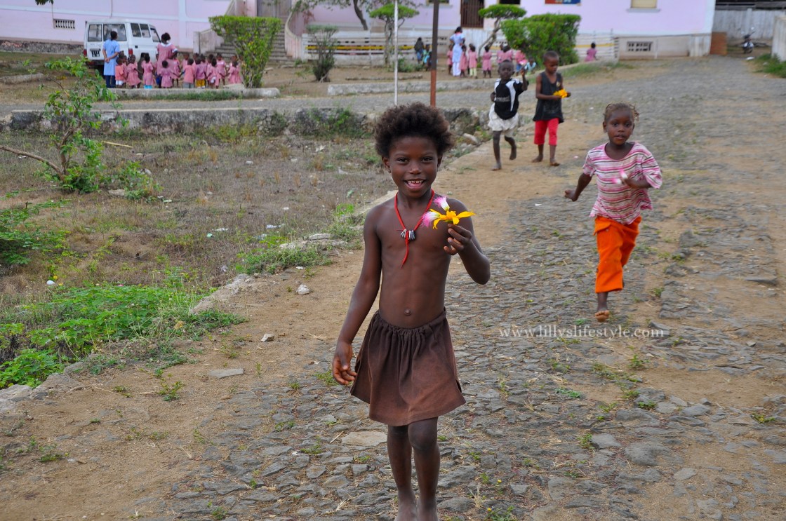 Devo essere sincera con voi, la visita delle Roças mi ha deluso molto. Non trovo di nessun interesse percorrere strade dissestate per visitare antiche case coloniali abbandonate e decrepite, fatta eccezione ovviamente per la Roça Bela Vista che ospita ancora una grande comunità ed è ancora parzialmente in attività. Incontriamo una simpatica donna che ci mostra le vasche dove viene essiccato il cacao e ci racconta un po’ del suo lavoro giornaliero. La Roça è popolatissima di curiosi bambini che, pur non avendo ricevuto dolci da noi, mi regalano fiori di campo, sorrisi e abbracci.