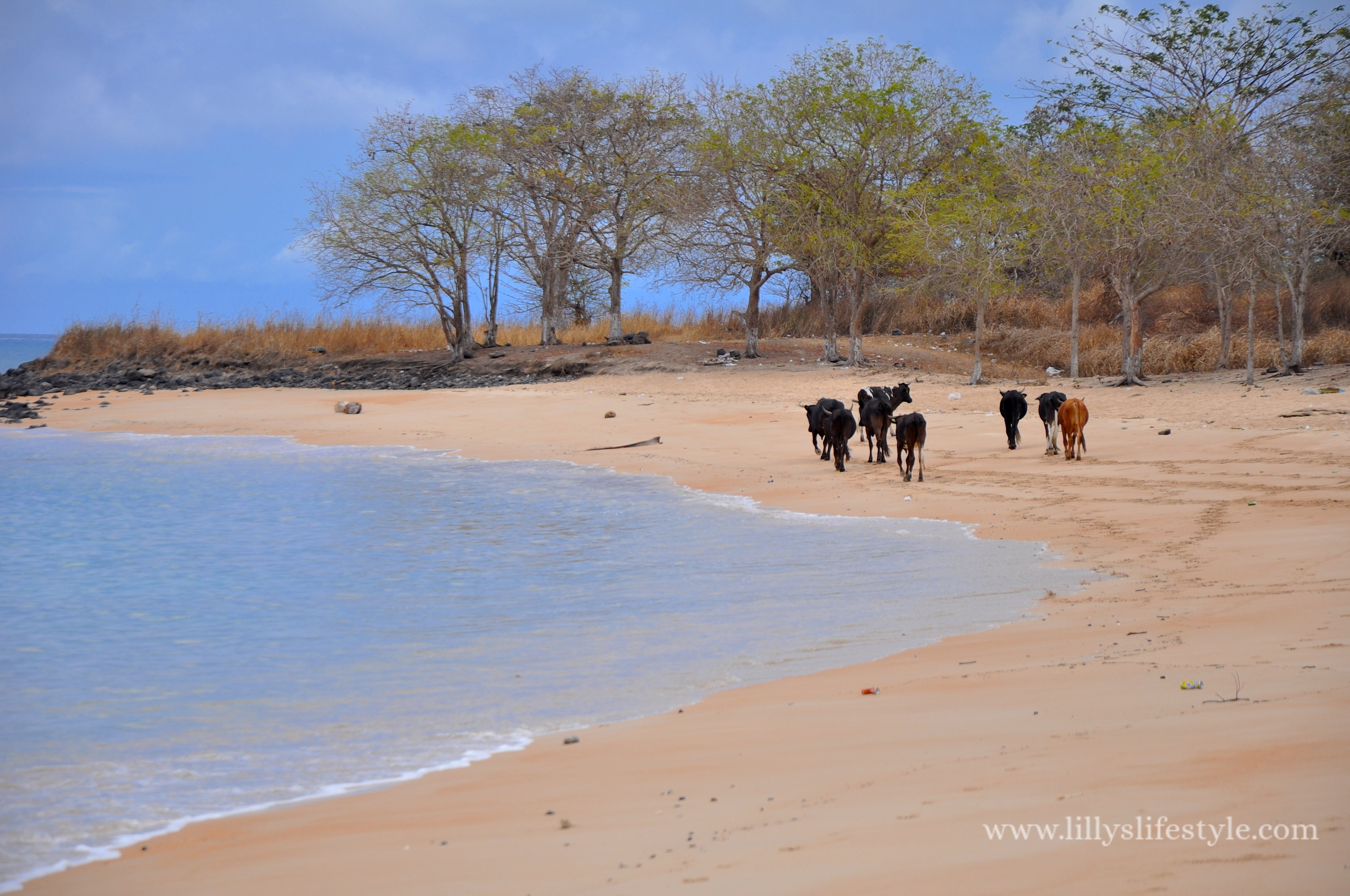 Riprendiamo la strada della costa per dirigerci verso Praia Tamarino, suggestiva spiaggia ambrata completamente deserta, se non fosse per delle simpatiche mucche che sono scese in spiaggia per pascolare un po’ in riva all’oceano. Ovviamente, non ho resistito ed ho immerso i piedi nelle calde acque equatoriali. Proseguiamo poi verso la Lagoa Azul, appena siamo arrivati e l’abbiamo vista dall’alto abbiamo subito capito il perché del nome. Le acque sono di un turchese mai visto prima, peccato che scendendo poi giù in spiaggia perda il suo fascino. Qui incontriamo alcuni pescatori appena rientrati con le reti colme di pesce.
