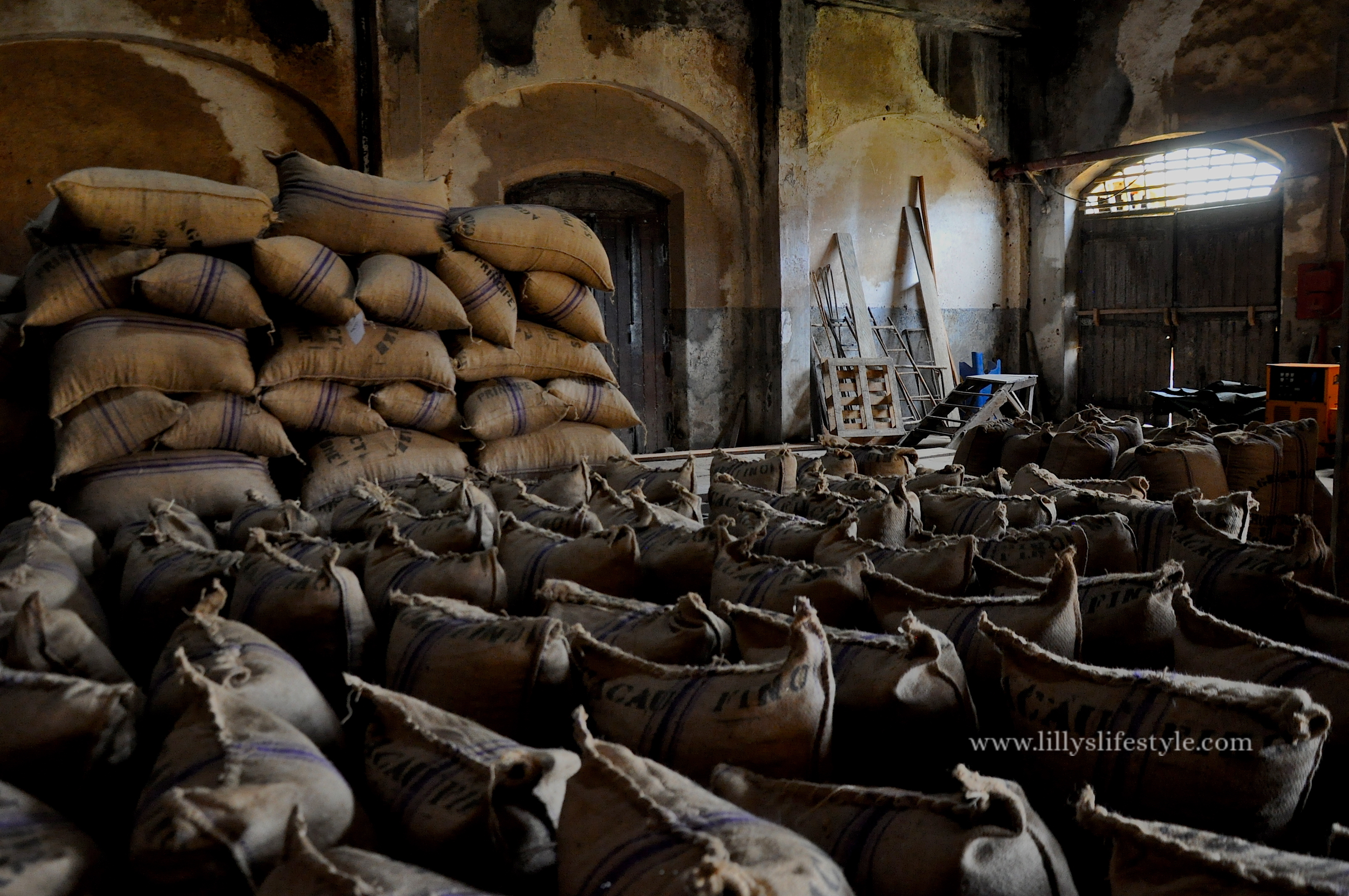 Continuiamo verso la Roça Diogo Vaz, ancora in attività, para con grande produzione. Visitiamo il magazino dove consevano i sacchi di cacao, rigorosamente selezionato a mano chicco per chicco, la sala di fermentazione con le varie vasche, e all’esterno le vasche di essicazione. Proviamo il cacao (presto vedrete il video) e ci facciamo raccontare la storia della comunità che vive nell’area.