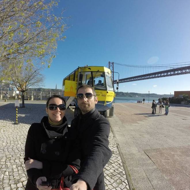 Saliti a bordo, dopo la verifica dei nominativi, ci sediamo ed allacciamo le cinture di sicurezza. Consiglio: se volete fotografare la città è meglio che vi sediate sul vostro lato destro, dietro al conducente per intenderci. Se invece volete approfittare della Torre di Belém e del fiume, allora vi conviene sedervi sul vostro lato sinistro, come abbiamo fatto noi.
