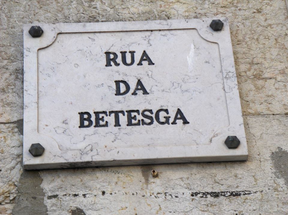 Betesga significa vicolo. L’origine del nome deriva sicuramente dal vicolo buio che esisteva nello stesso luogo prima del terribile terremoto del 1755. Avete mai sentito le espressioni «Meter o Rossio na Betesga» o «meter o Rossio na rua da Betesga» oppure «Colocar o Arco da Rua Augusta na Rua da Betesga»? È un’espressione portoghese che significa “fare qualcosa d’impossibile” proprio come “mettere Rossio nella Betesga”.