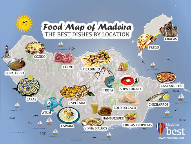 VINI: sicuramente il famoso vino di Madeira, un vino liquoroso prodotto con i vitigni: Sercial, Verdelho, Boal, Malvasia, Terrantez e Tinta Negra. Il processo di fortificazione avviene fermando la fermentazione aggiungendo alcool vinilico al 96% vol. La scelta del momento di interruzione della fermentazione crea le diverse tipologie di vino: o seco, o meio-seco, o meio-doce e o doce.