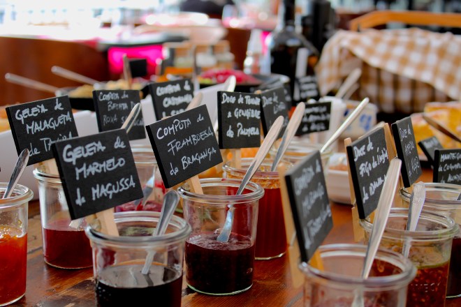 Chi predilige il dolce non deve temere perché avrà l’imbarazzo della scelta tra frutta, marmellate artigianali dei conventi (alcune dai gusti insoliti come ciliegie e peperoncino di Tavira, oppure, pomodoro e zenzero di Palmela, o melone con vino di Porto di Alfaião, per non parlare poi dei cubetti di mela cotogna bianca di Odivelas). Pensate che alcune hanno un numero limitato di produzione a soli 6 barattolini. Incredibile vero?