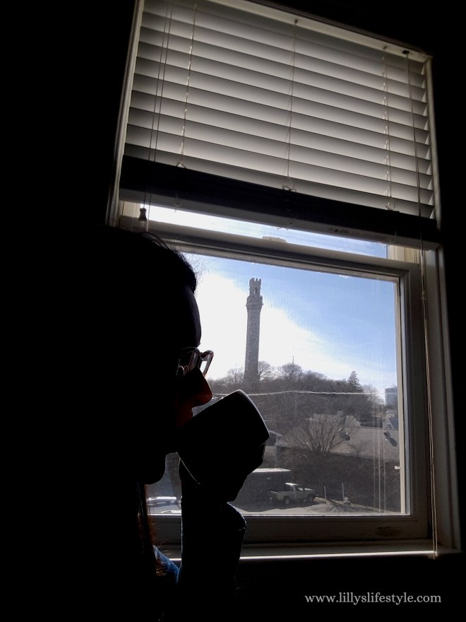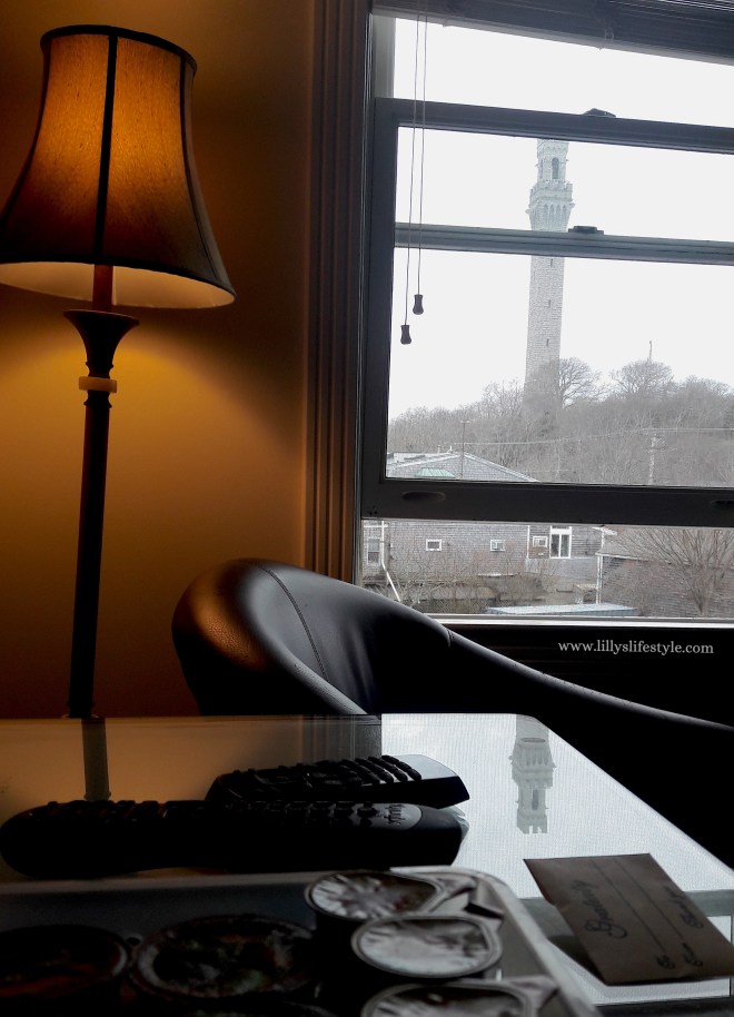 Noi avevamo una bella vista della torre dalla stanza del nostro hotel (Pilgrim House, unica opzione per dormire, era tutto chiuso o pieno). La torre fu costruita per celebrare l’approdo dei Padri Pellegrini. Non lo sapevate che arrivarono qui nel 1620 e non a Plymouth?