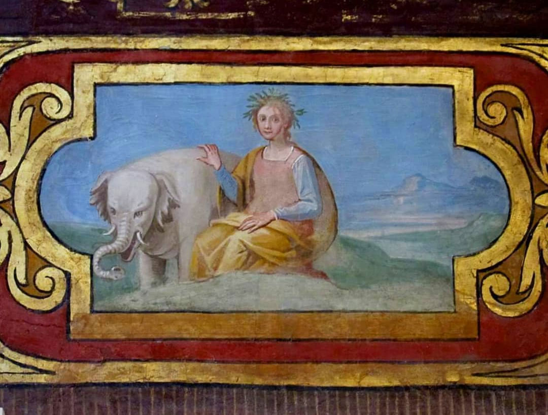 Il Papa chiese a Raffaello Sanzio di eseguire un dipinto, purtroppo andato perduto, ma restano gli schizzi che l’artista aveva realizzato in precedenza quando andava ad ammirare il grazioso pachiderma.