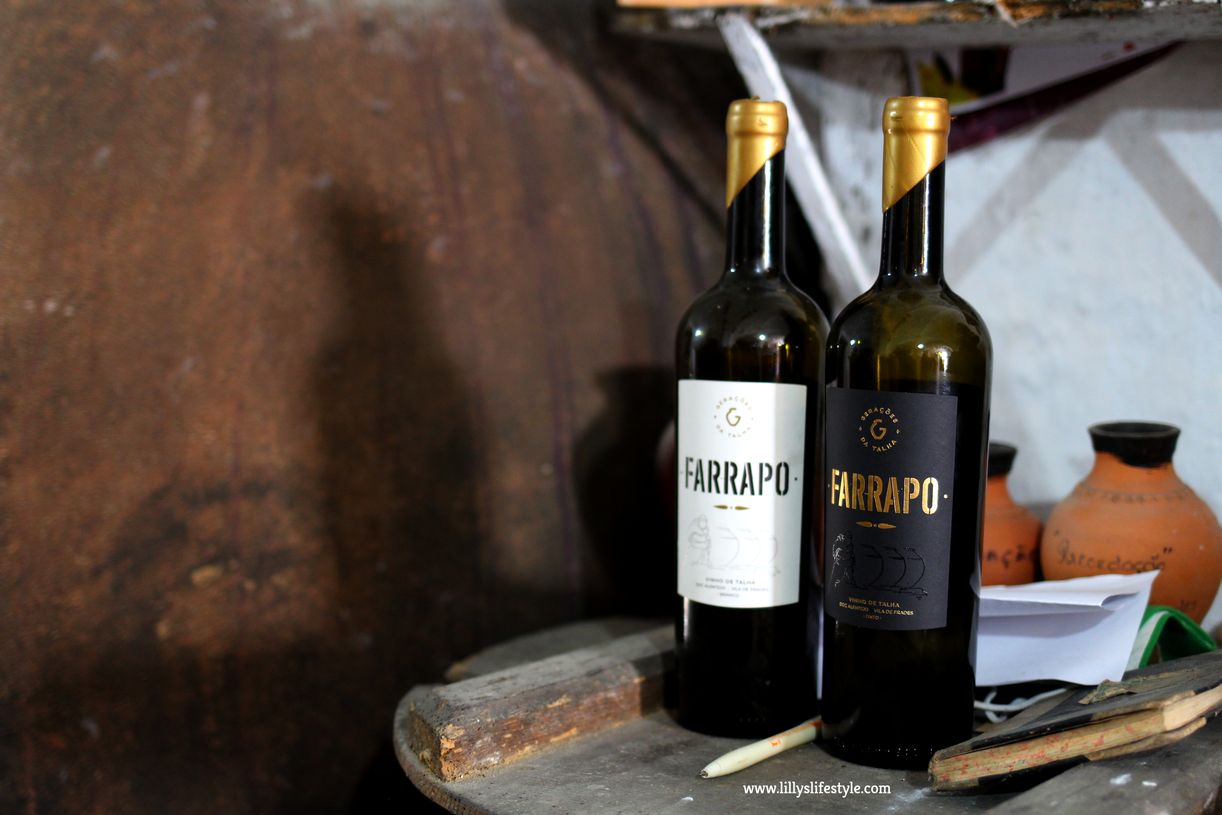 All’interno della taverna, tra talha centenarie, abbiamo provato il loro Farrapo sia bianco che rosso. Ovviamente il Farrapo non poteva che venire a casa con noi. Cosa significa Farrapo?