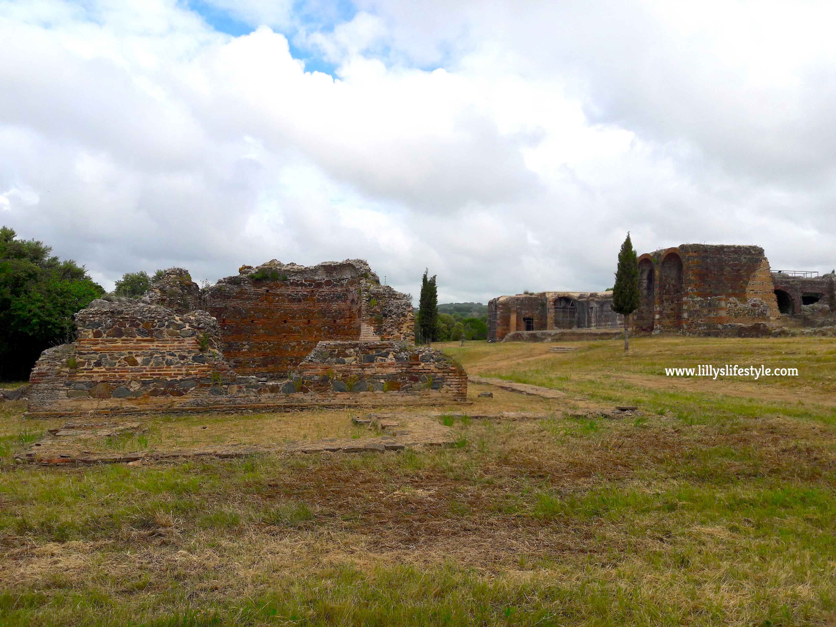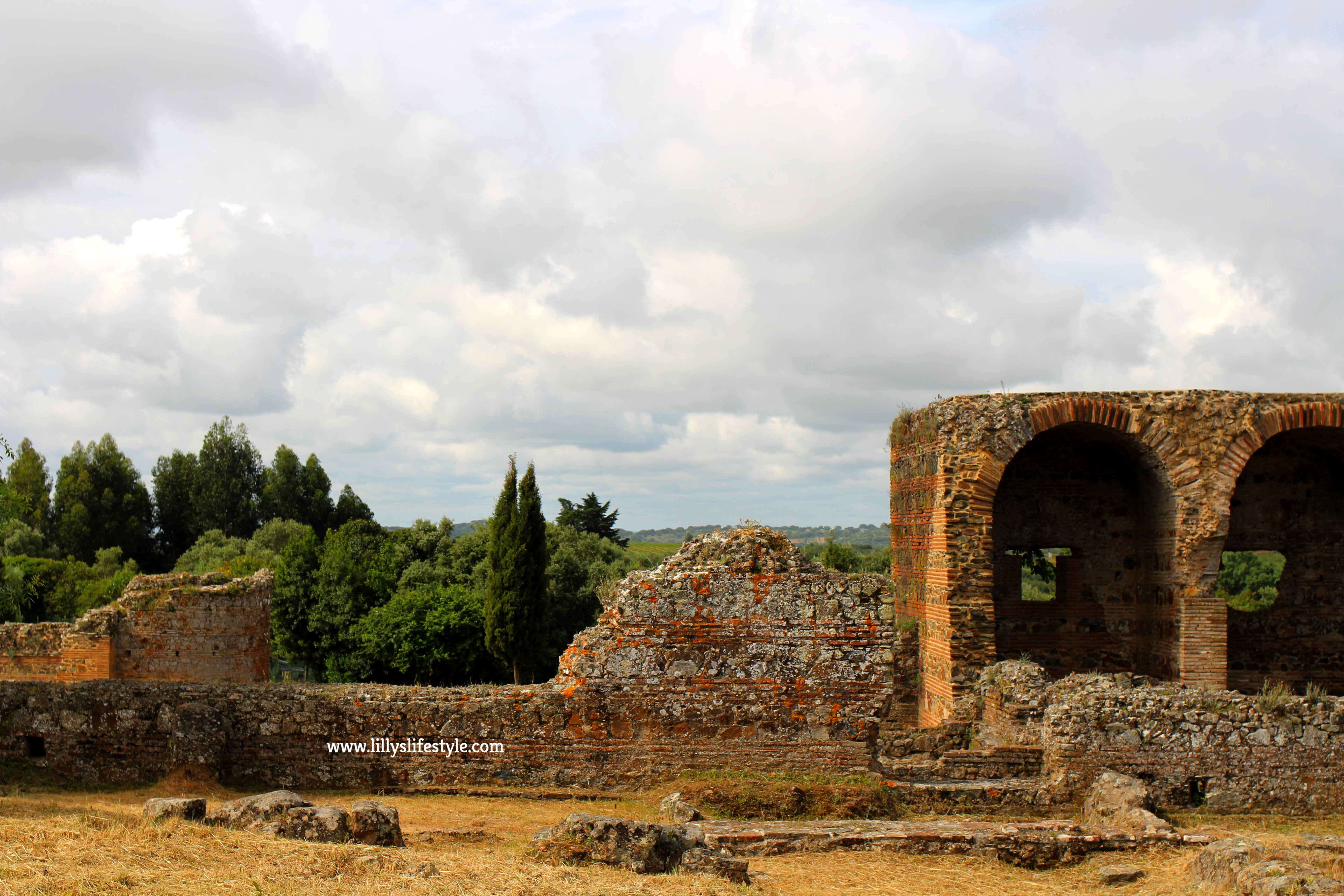 Gracinda ci attendeva all’entrata della biglietteria. Sarà lei e la sua cagnolina ad accompagnarci durante la visita. Le rovine della Villa Romana sono conosciute anche con il nome di Ruínas de Santiago e sono costituite da un palazzo signorile, le terme, un tempio e una zona di produzione agricola. Si crede che la villa sia probabilmente la più grande del Portogallo, almeno scoperta finora.