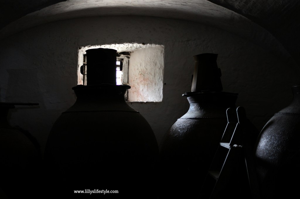 Entrati, ci rendiamo subito conto che la visita ci stupirà. Il centro è suddiviso in cinque aree distinte: il territorio, la storia millenaria di São Cucufate, la cultura della vite, il processo del vino in cantina e la taverna. Come vi anticipavo, in ogni area ci sono dei tablet a disposizione grazie ai quali si possono approfondire le tematiche trattate grazie alla realtà aumentata. [Unica pecca e non avere pensato ai sottotitoli nei video testimonianza.]