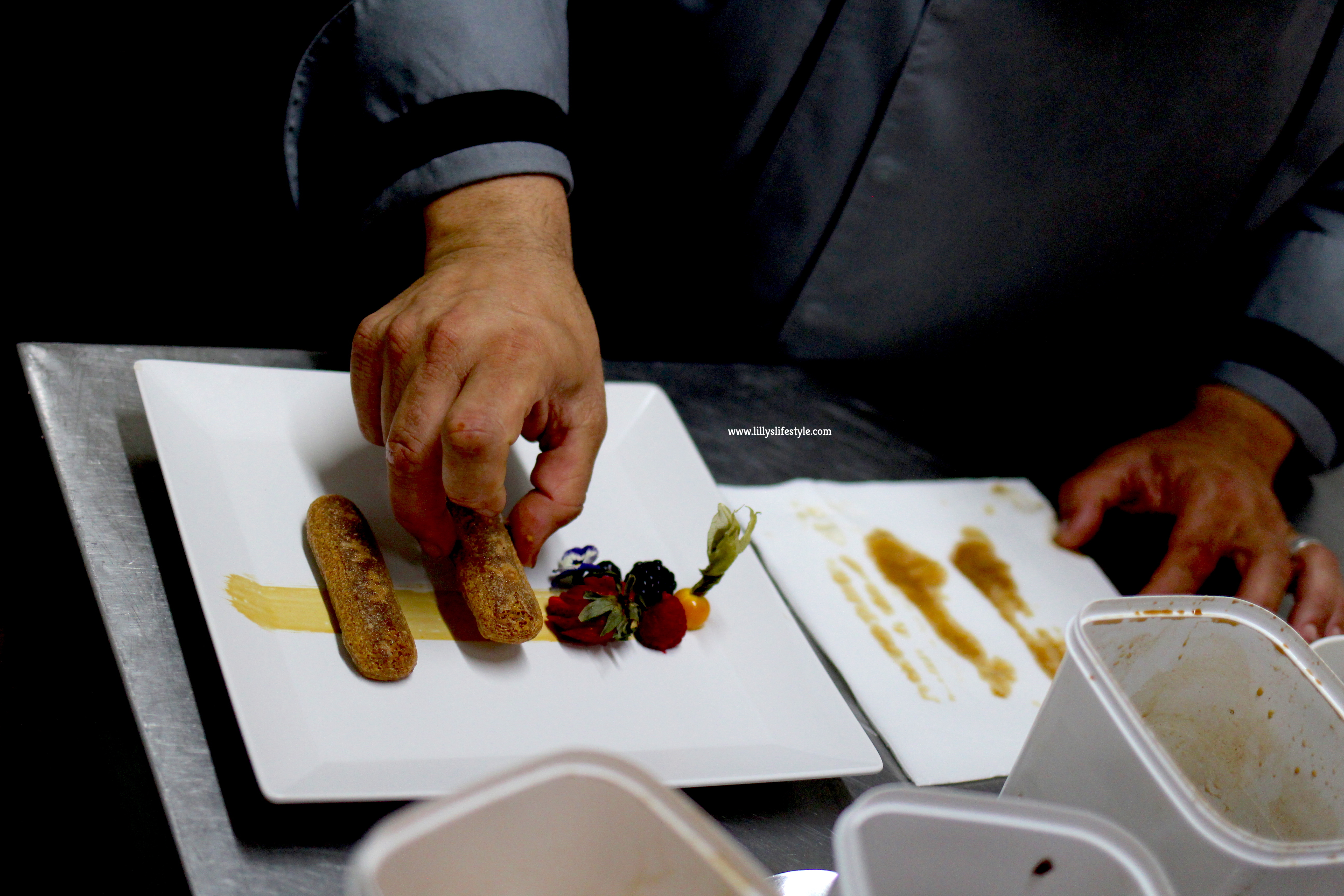 Lo chef prepara per noi un tiramisù con la sua firma (senza uova crude). Scherziamo abbastanza in cucina quando lo prepara sapendo che sono italiana (esigente) e che il tiramisù è il mio dolce preferito da sempre.