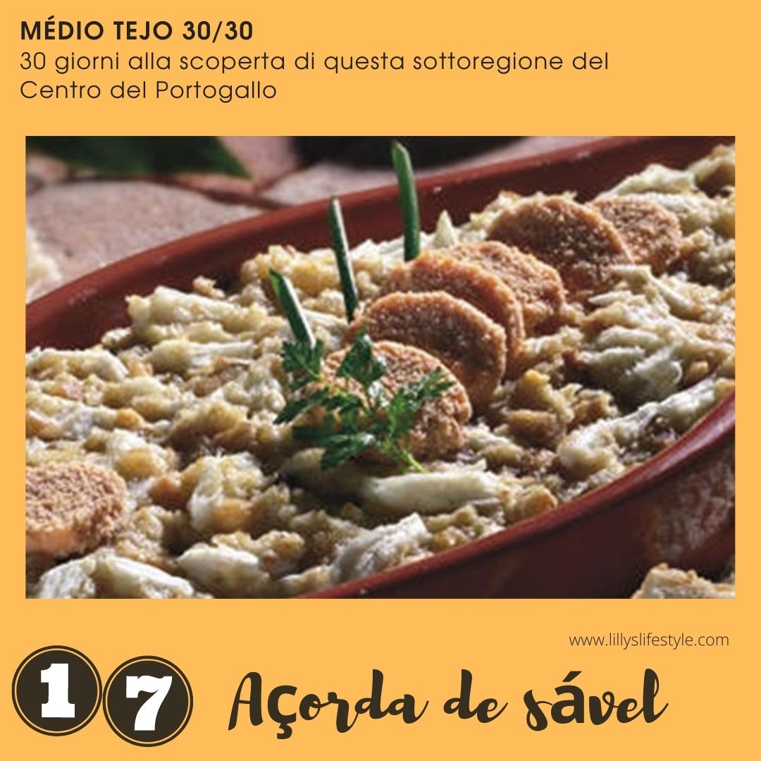 Il Sável è un pesce d’acqua salata e dolce che si trova facilmente nel fiume Tago, in italiano si chiama Alosa. L’Açorda, invece, è una zuppa tipica dell’Alentejo che non è cotta.