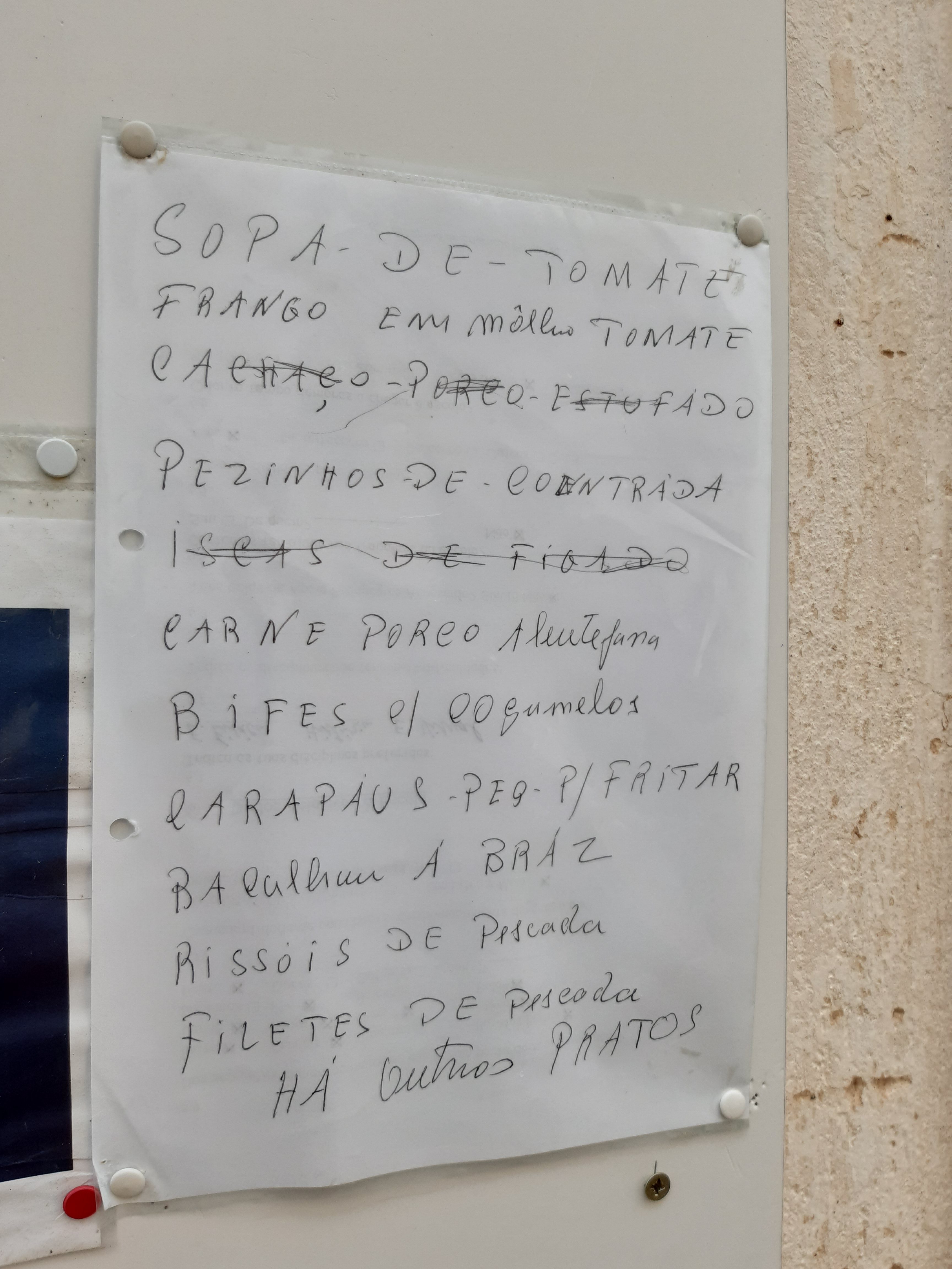 Forse ricorderete il video che ho pubblicato sul mio profilo Instagram. Si tratta del Clube Desportivo Caliponense dove una coppia di simpatici attempati servono piatti del giorno a prezzi quasi impossibili. Consiglio vivamente di pranzare lì (non adatto ai vegetariano o vegani). Guardate il video in basso se non lo avete ancora fatto su Instagram.