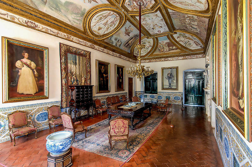 Sono circa 50 gli ambienti visitabili. Entrare nel palazzo è un viaggio nel tempo. La sala più grande del palazzo è sicuramente la Sala dei Duchi con le sedie in velluto ricamate con fili d’argento, il tappeto persiano, le armature e le anfore, oltre al soffitto intagliato con cornici in legno sbalzato che presenta 18 ritratti a olio del XVIII secolo secolo. Sono rappresentati i 16 duchi di Bragança e i genitori del primo di loro.