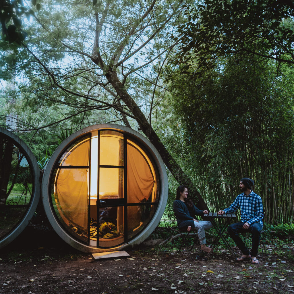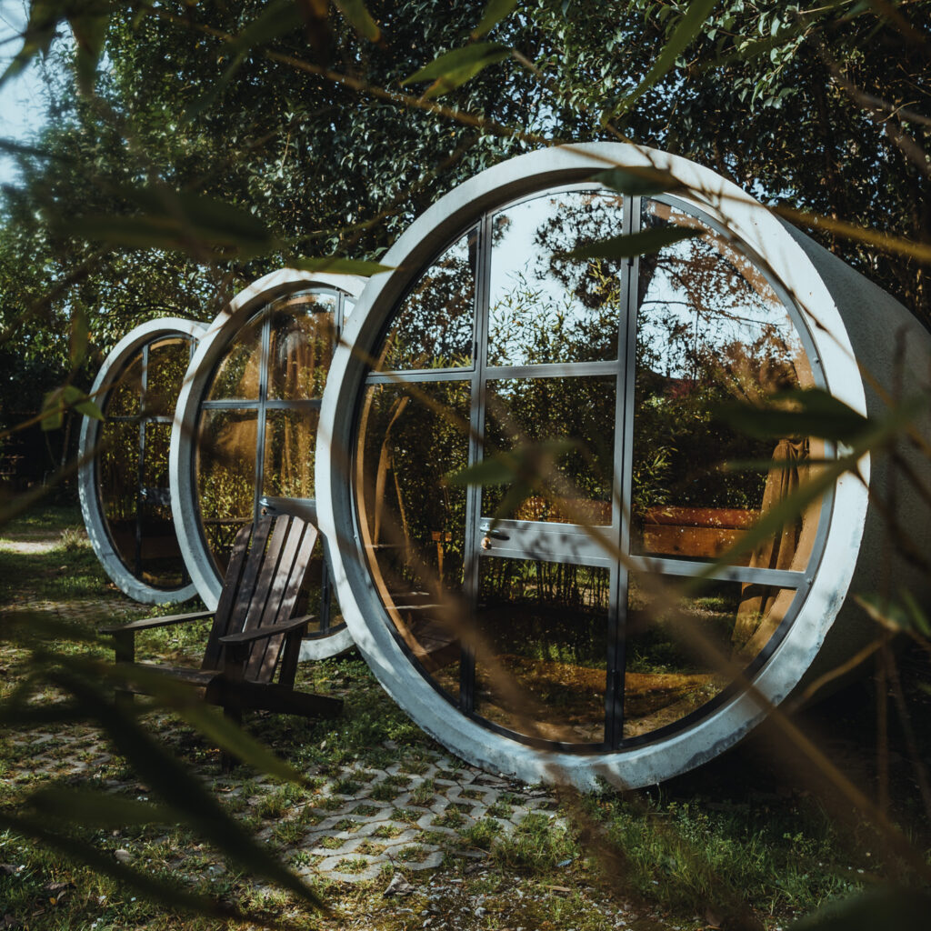 Forse la soluzione più bizzarra che troverete, almeno finora: un tubo di cemento. Idea di una coppia di olandesi trasferiti in Portogallo. La coppia ha trasformato otto tubi di cemento in stanze accoglienti, nascoste nel verde.